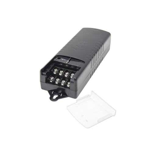Adaptador tipo jack de 3.5 mm macho polarizado de 12 vcd con terminales de presión.